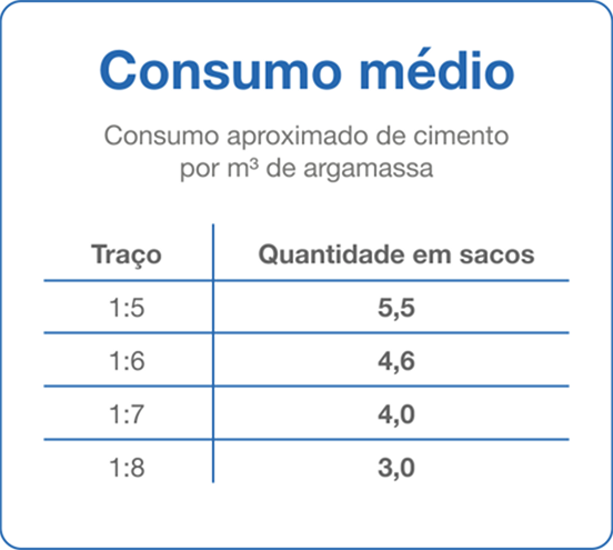 – Adicionar sempre 1 porção de cimento para cada 5 de Argamassa Fina ou para 8 de Argamassa Média;